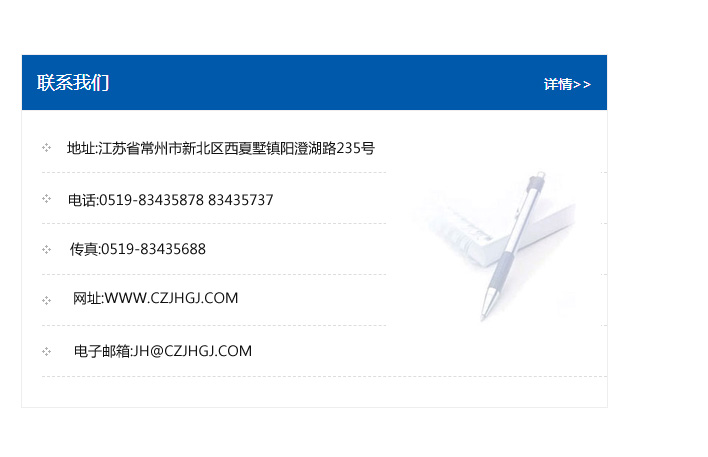 地址:常州市新北區(qū)友邦商務(wù)大廈1幢16、17層  電話:0519-85101652  傳真:0519-85112595  郵編:213022  網(wǎng)址:www.cz-jiayue_cn.jtxnyglass.com  郵箱:xiajifengaa@163.com
